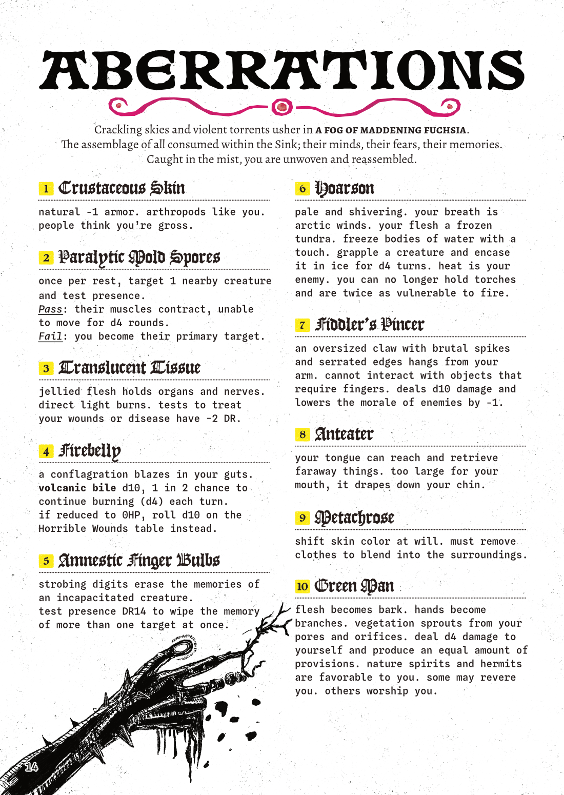 - 20 aberrations for mutated characters.